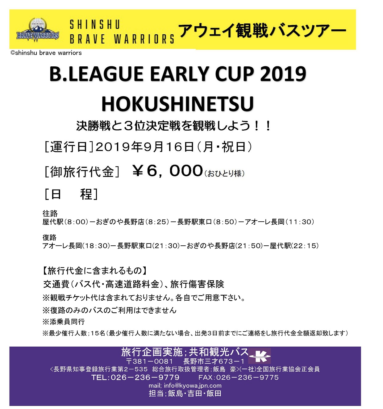 B..リーグ アーリーカップ北信越2019 観戦バスツアー